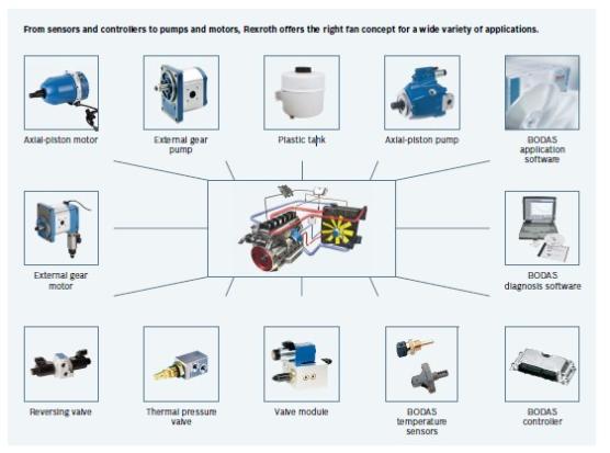 The task of a hydrostatic fan drive is to use controlled air movement to carry off the dissipated heat from the combustion engine arriving at the radiator. Here the drive serves to ensure optimal engine and combustion temperature. Intelligently controlled fan drive systems thereby help to maintain the legal emissions directives while saving energy. How? Controlled by highly developed sensors, they provide cooling based on the measured temperature to consistently reduce operating costs. No more or less cooling than needed – regardless of whether in on- or off-highway applications.