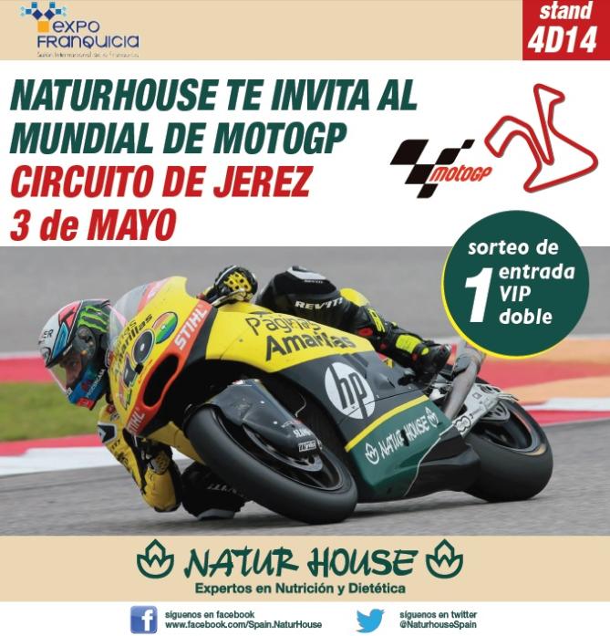 El 23 de abril, día de la inauguración de la feria, el stand de Naturhouse contará durante la mañana con la presencia de Alex Rins y Luis Salom, pilotos de Pons Racing, equipo del campeonato del mundo de velocidad en la categoría Moto2 que el grupo patrocina desde el año 2012, y que firmarán autógrafos y charlarán con los visitantes del stand de la compañía. La moto de competición del equipo estará expuesta durante toda la feria y quienes acudan al stand de Naturhouse a conocer las características de las franquicias de la compañía podrán participar en el sorteo de dos pases VIP para el Gran Premio de España de motociclismo, que se disputa los días 2 y 3 de mayo en el circuito de Jerez de la Frontera (Cádiz).