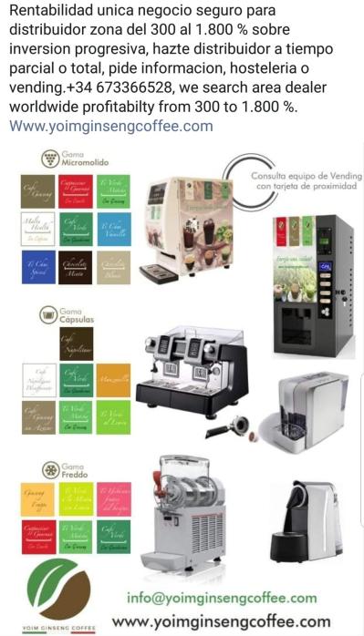 www.yoimginsengcoffee.com multinacional se presenta en España e internacionalmente, excelente oportunidad sector horeca, vending, alimentacion, ahora en inicio sin canones ni royalties, no es necesario almacen, con o sin el, desde su local, oficina, casa empresa o almacen, zonas exclusivas