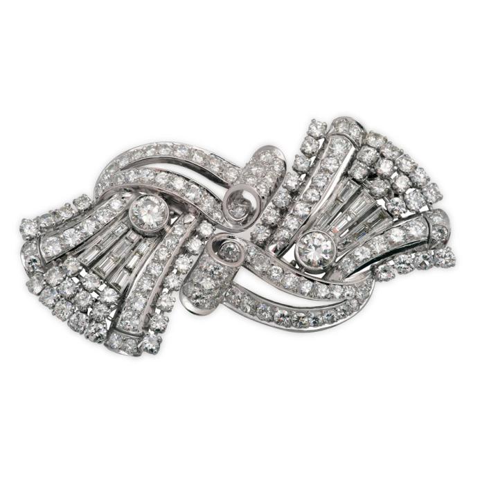 -Descripción: Realizado en platino con diamantes de talla brillante y talla baguette.