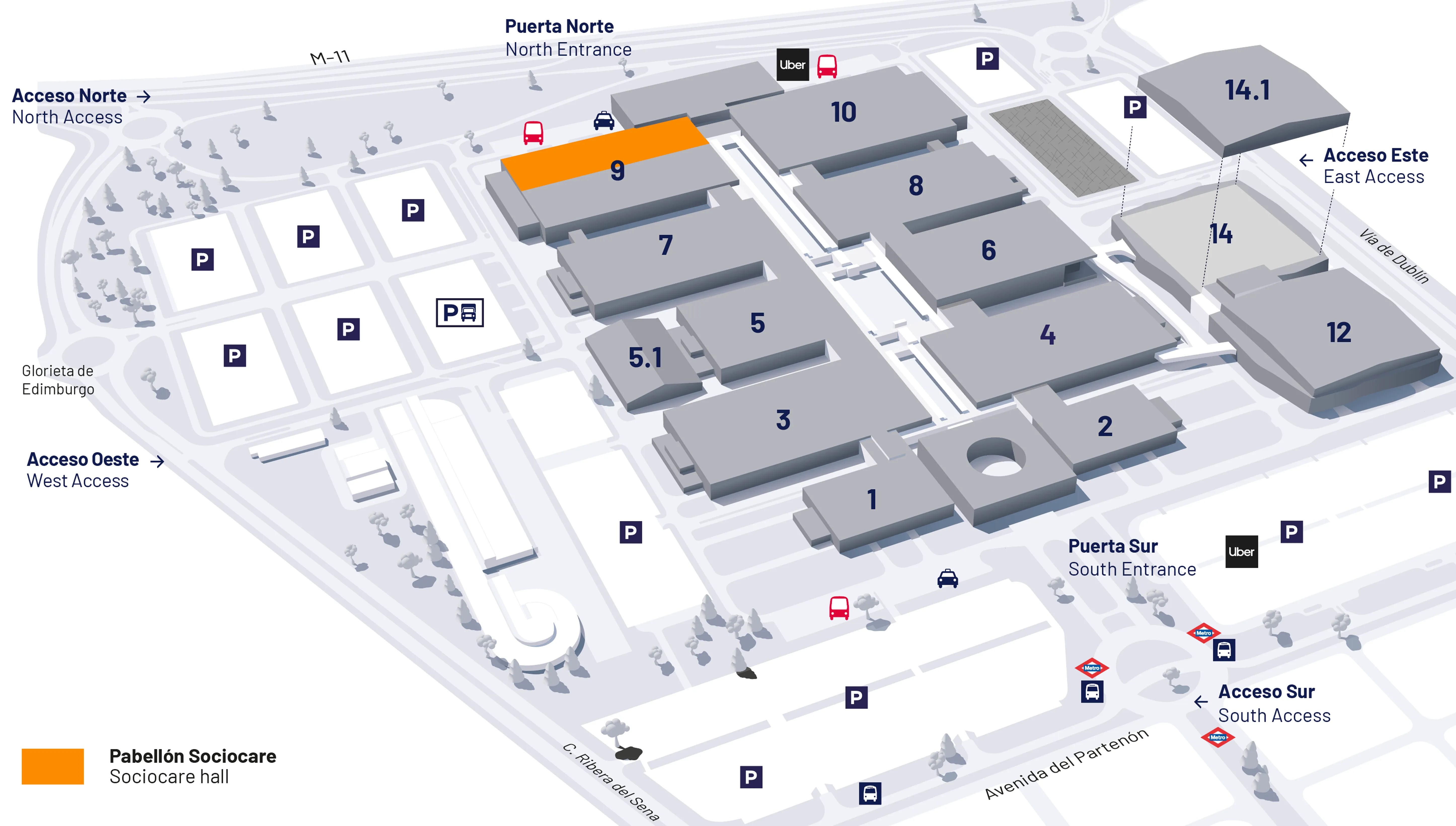 • Puerta Este (Frente a la salida del Pabellón 6, junto al Pabellón 14)